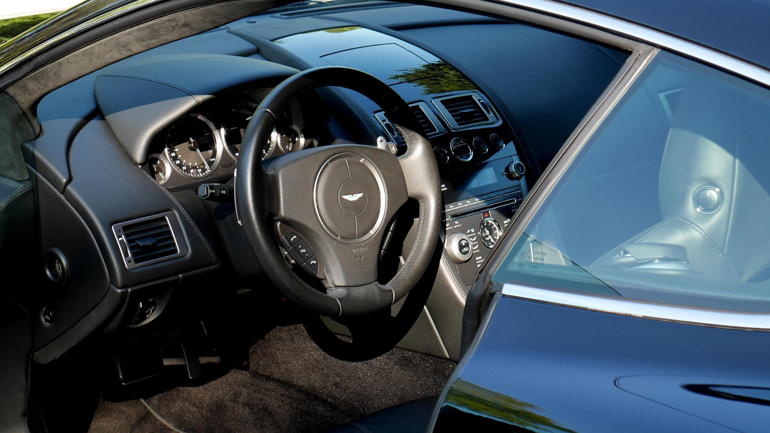 | Performances extrêmes et élégance réunies en bonne intelligence, une Aston Martin est rare et pourtant sa silhouette est familière, identifiable au premier regard, devenue comme un symbole. Cette DB 9 Coupé, V12, est magnifique, finie en noir ( Jet Black ), sellerie noire (Obsidian Black) assortie rehaussée de coutures "Chocolat ". C'est une première main, acquise neuve à Monaco, ayant peu roulé et scrupuleusement entretenue. |