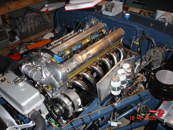 Le souhait de son propriétaire, client de longue date d' AUTODROME, était d'avoir une JAGUAR Type E, utilisable au quotidien mais aussi lui permettant de bien figurer, avec plaisir, en s'alignant dans des compétitions de voitures historiques. La restauration a donc intégré une préparation essentiellement basée sur un montage soigné et rigoureux, un équilibrage parfait de toutes les pièces mobiles, de nombreux accessoires ou pièces mécaniques sont des pièces compétitions, renforcées ou optimisées. La voiture est équipée de jantes en alliages Dunlop, [ les ailes arrières ont été légèrement élargies à la façon des "lightweight" de l'époque ], montées en pneus tendres Avon.