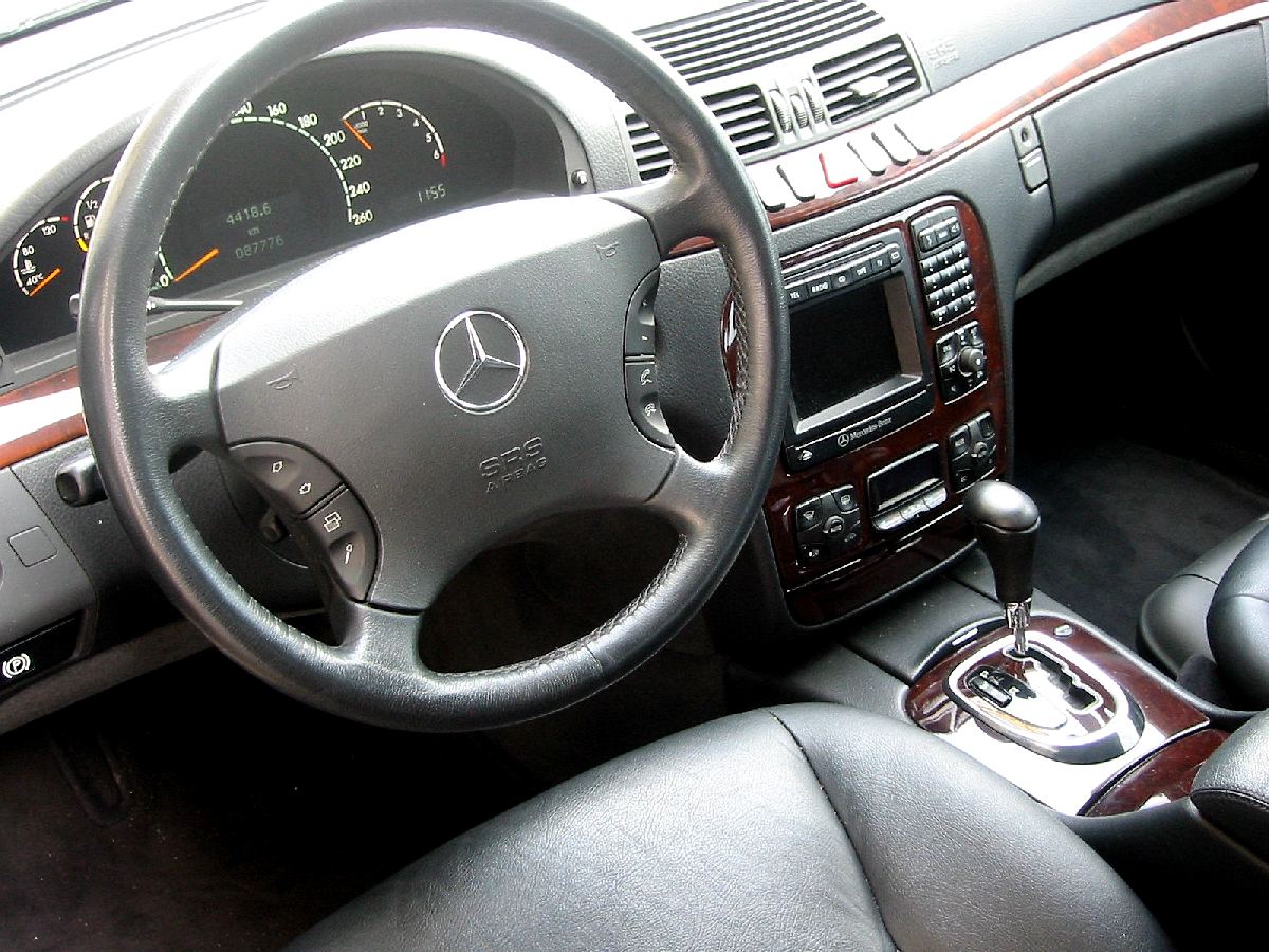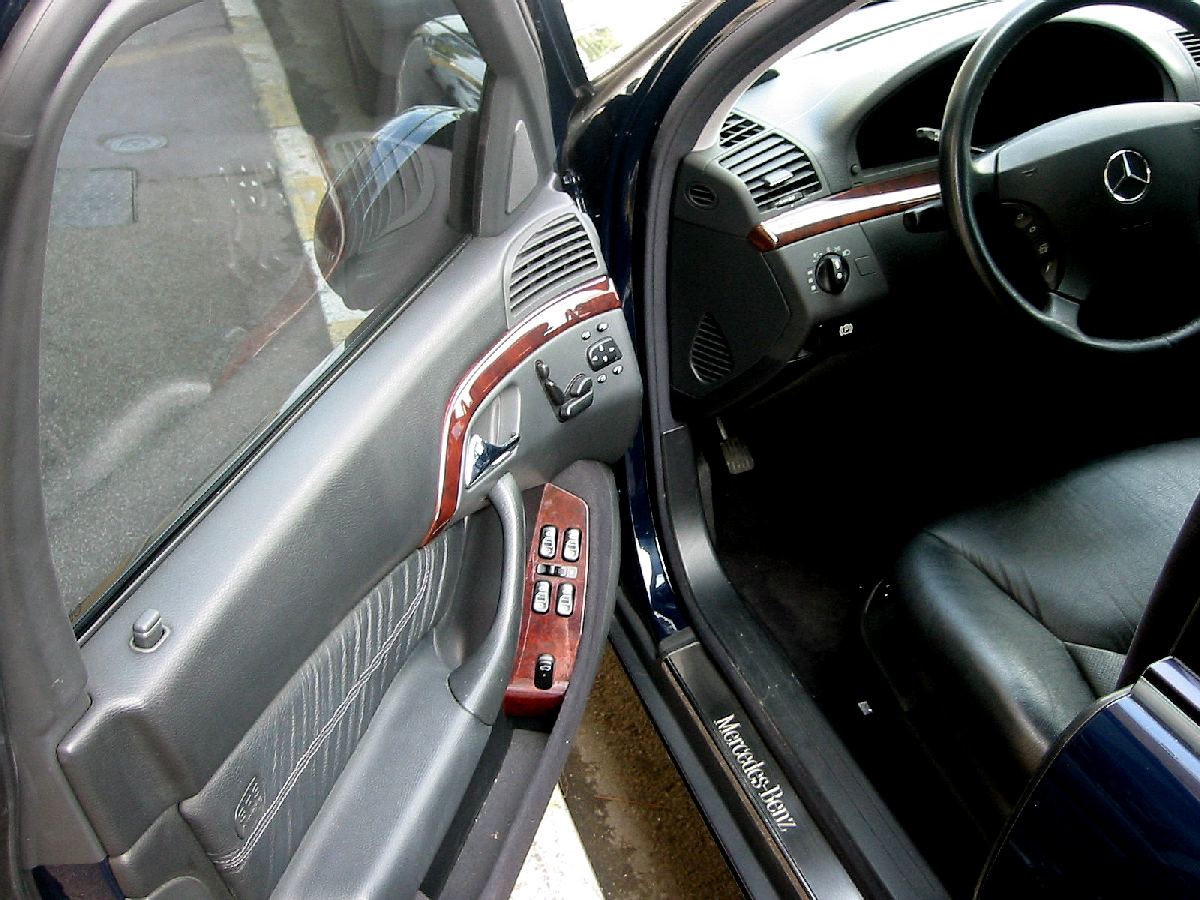 Cette berline Mercedes S 320, à notre avis la plus élégante des dernières générations de Classe S, est finie en bleu nuit avec sellerie en cuir gris foncé.