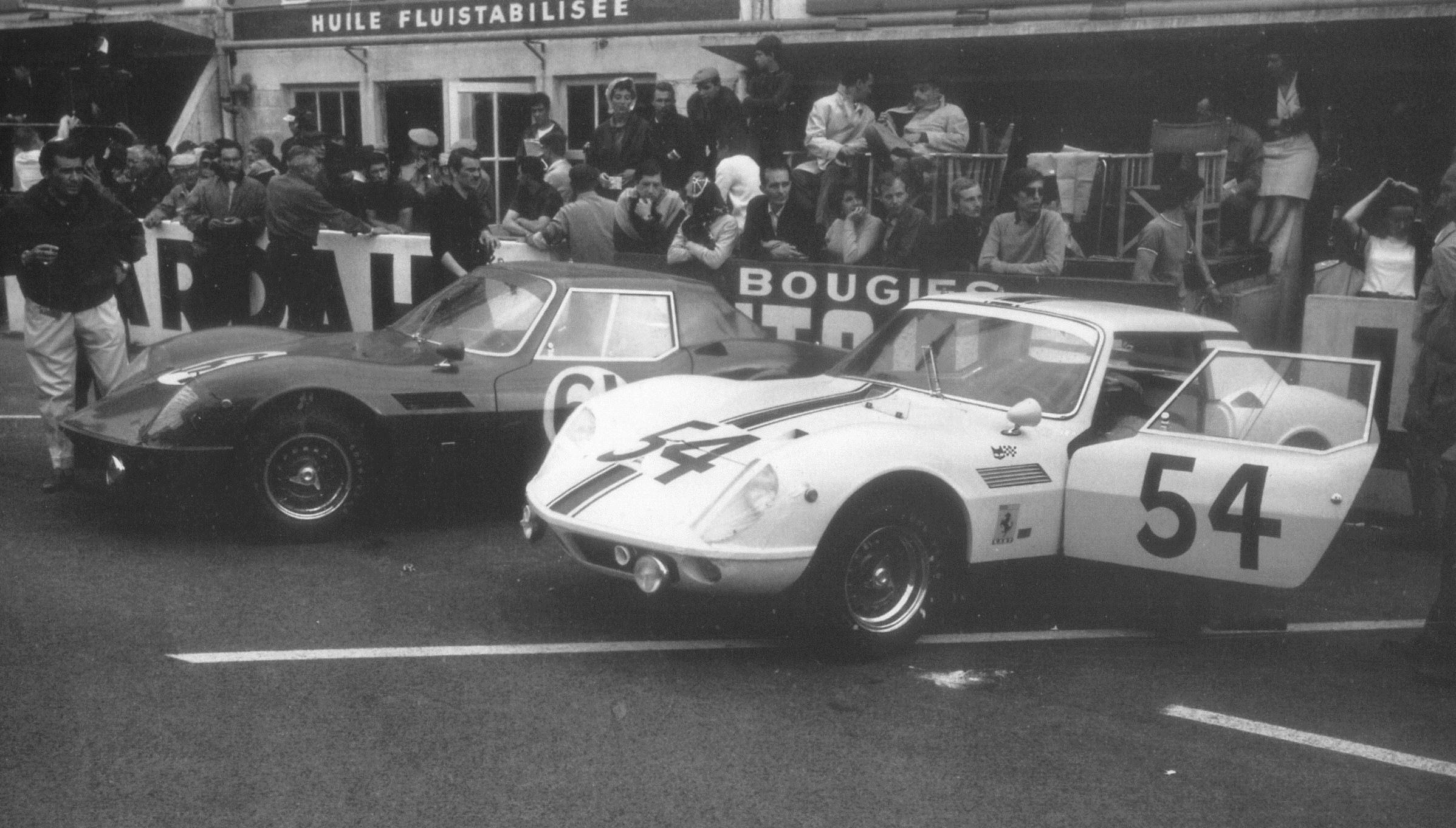 A gauche : 24 H de Daytona 1967 : ASA-Ferrari du NART et Ford GT40. La petite GT