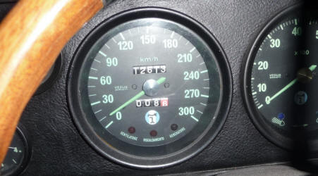 Le kilométrage affiché au compteur est un incroyable chiffre de 12.600 ; pourtant, au vu de l'état mécanique et des factures d'entretien, il nous semble probable que ce chiffre reflète la réalité. En effet, le dernier propriétaire, que nous connaissons bien, l'a conservée plus de 25 ans et nous savons qu'il ne l'utilisait que parcimonieusement.