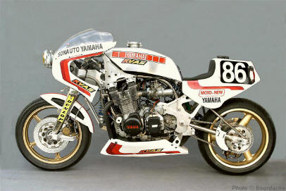 The engine is a liquid-cooled two-stroke in-line four, delivering 150bhp at 12,300rpm