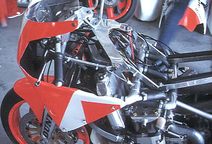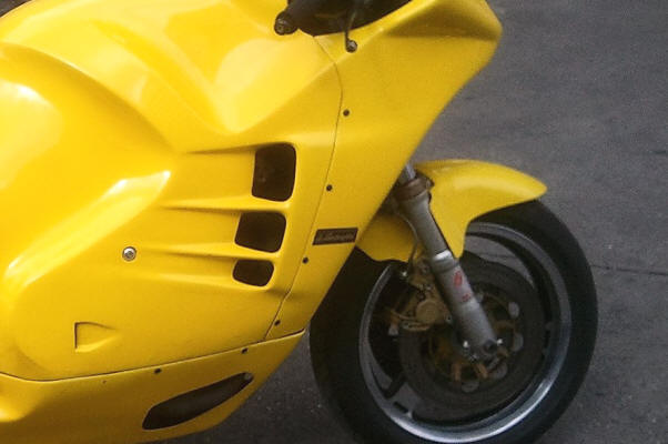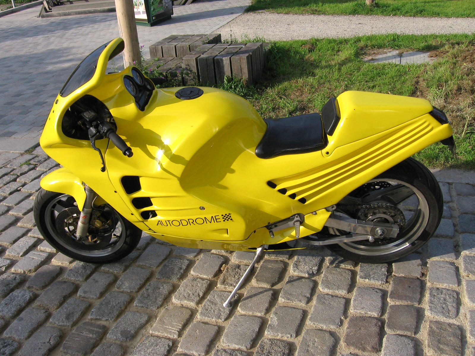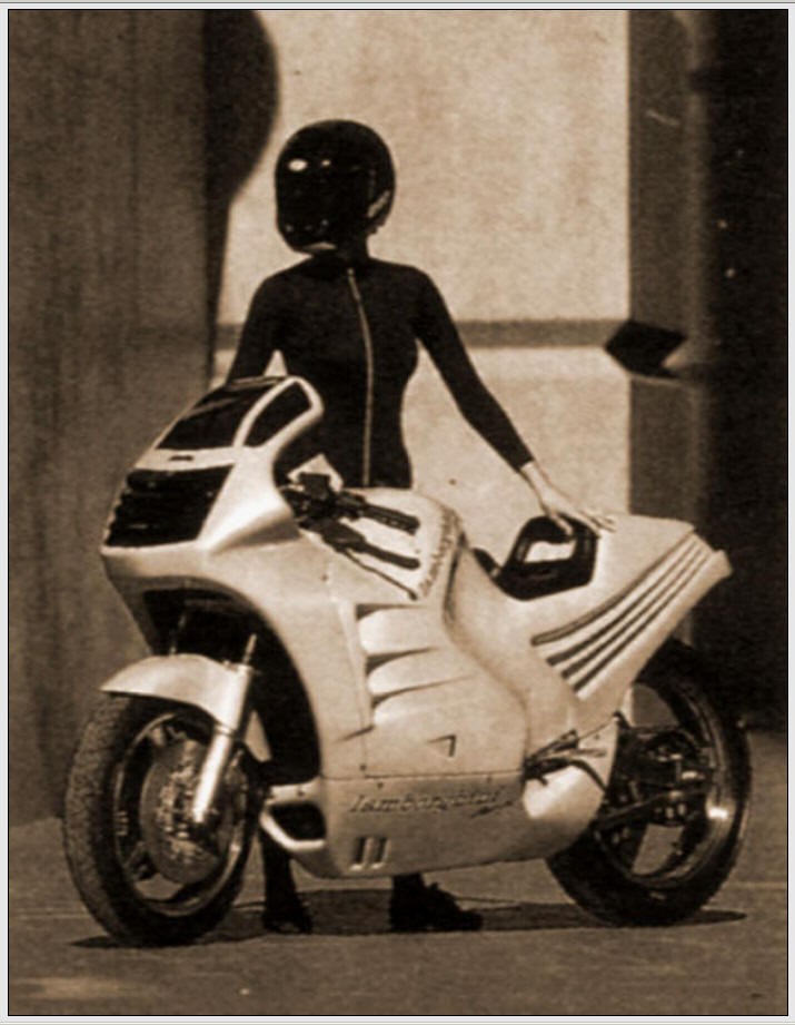 The price asked when this machine was presented was twice as high as the one of the most famous high-end motorbike of the period. This factor, in addition to the availability in extremely limited series contributed the myth of "the Lamborghini motorcycle". As specialists know, Chief Engineer for this bike was Claude Fior, famous for his unique high-tech racing bikes, and who unfortunately died too young in 2001. Claude Fior also created many technical new systems for racing bikes. The most famous was the double-triangle front suspension, comparable to racing cars fully adjustable suspension (for more about Claude Fior please see here below).