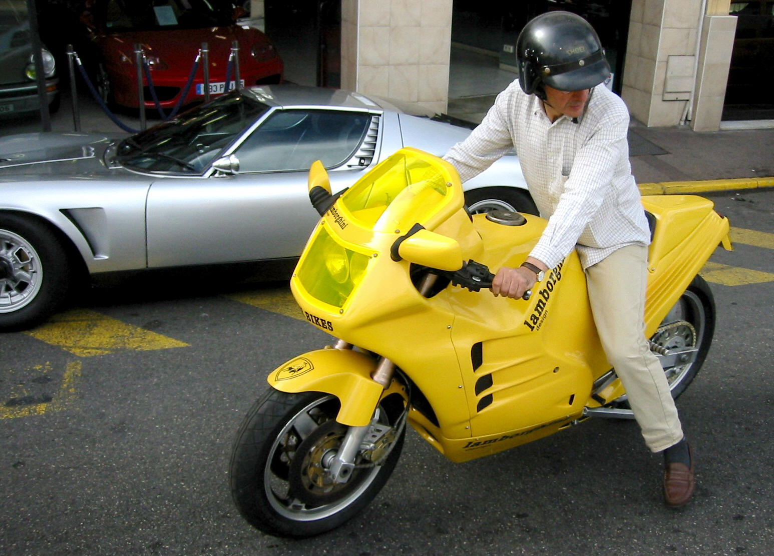 An impossibly rare 1000 cc Lamborghini Motorbike designed in collaboration between Lamborghini and French hi-tech racing bike constructor Boxer-Bikes.