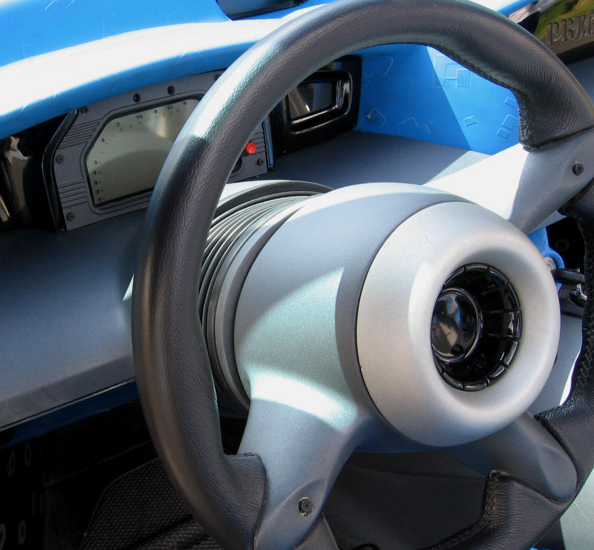 The structure is a lighter and more straight-forward rear wheel drive - versus the last Diablo's all-wheel drive - and radiators have moved to the front. Also, the car is designed to be easily convertible into a berlinetta with the addition of two "half-roofs" in see-through polycarbonate. The Pregunta uses Aerospace and Formula 1 technologies: Dassault stealth external paintwork (from the Dassault Rafale jet fighter), dynamic air intakes, fully electronic F-1 type Marelli instruments, 4 points Schrott safety harness, internal optical fiber lighting (DGA), rear-view camera replacing the mirrors, CDI Cristine GPS system, combat jet-derived cockpit ergonomy…