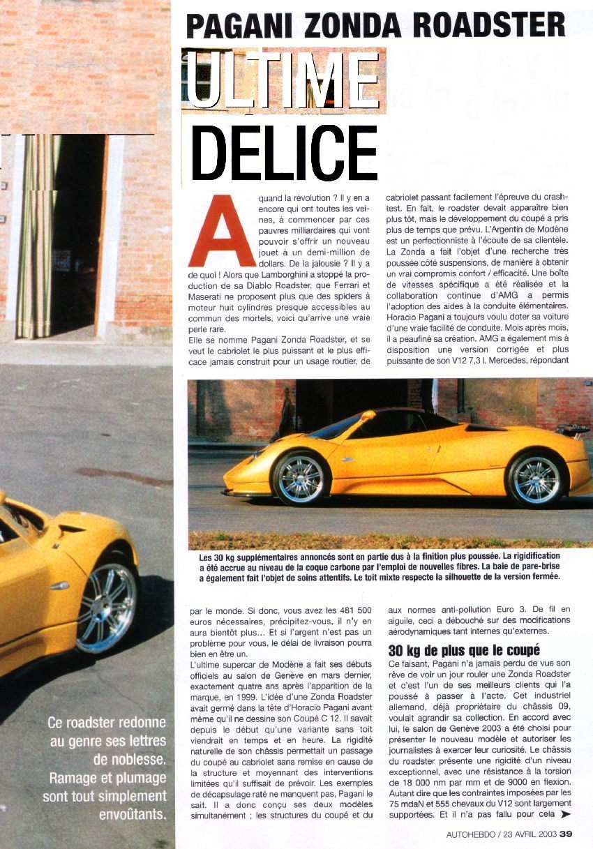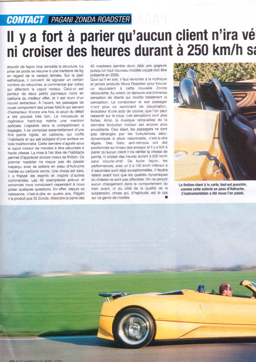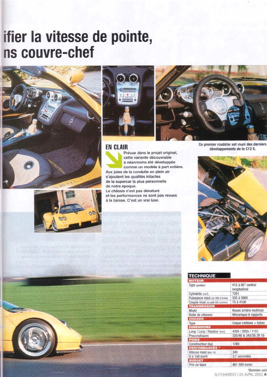 AUTO HEBDO (23 Avril 2003) essaie la Zonda S Roadster: