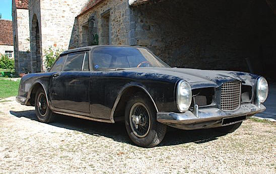 Ferrari 250 GT 1957 (dite Ellena, #807GT). A droite, la sublime Facel vega HK II, dite Facel 2 (#B 178). Bien des connaisseurs préfèrent nettement les autos non restaurées à celles refaites à neuf.