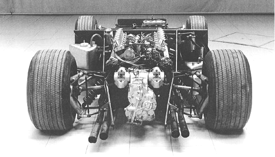 Vue arrière du châssis du prototype P5 Pininfarina.