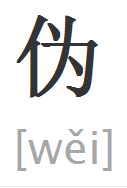 Caractère chinois signifiant "faux, falsifié, fantoche".