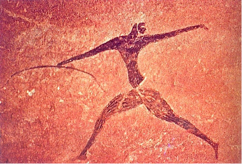 Peinture rupestre à Tin Mgharen (Algérie, 6 à 8000 ans av. notre ère)