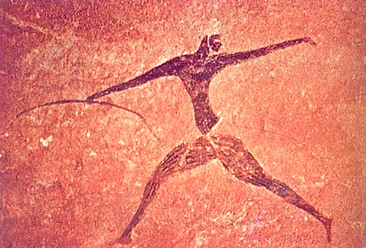 Peinture rupestre à Tin Mgharen (Algérie, 6 à 8000 ans av. notre ère)