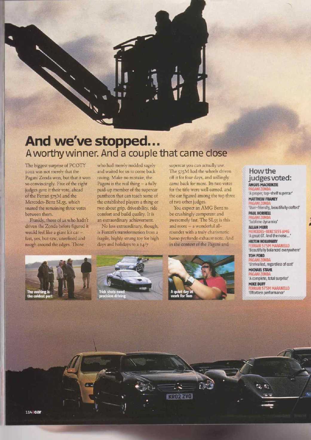 "La plus grande surprise na pas été que la PAGANI Zonda gagne, mais qu'elle remporte la victoire aussi largement : cinq juges sur huit l'ont élue."