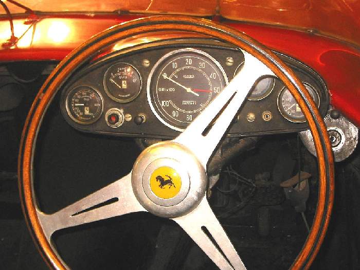 Sur la 250 Testa Rossa (ci-dessus #0704) était monté le même célèbre volant bois aux branches ajourées présent sur cette 250 GT.