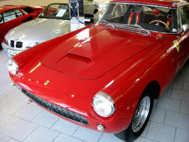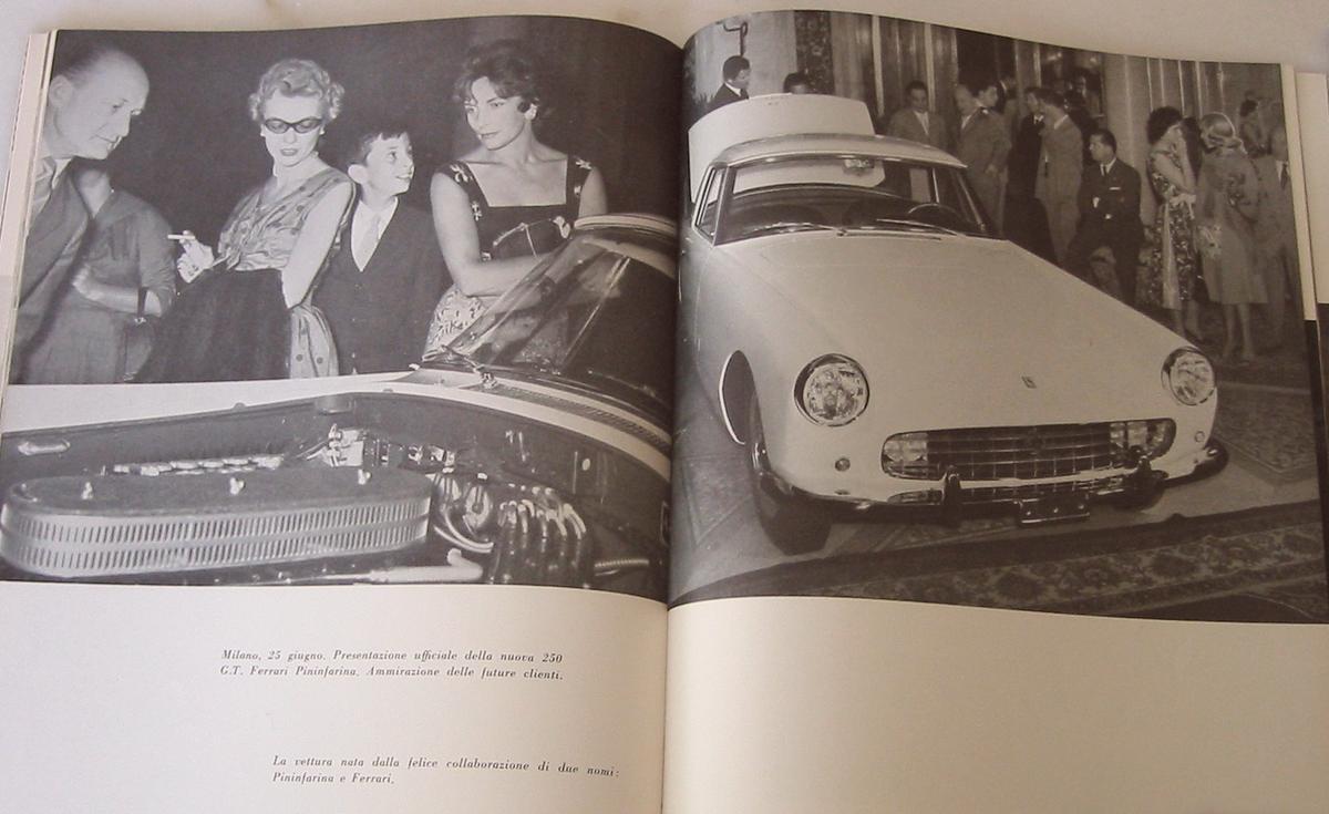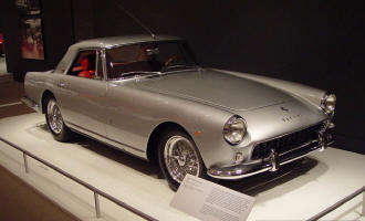 Sa carrosserie racée est signée Battista Pinin Farina. D'une ligne basse, élancée, ce coupé est esthétiquement magnifique, avec ses minces montants de pare-brise, son pavillon court et léger, son allure de "cigare" profilé et élégant qui signe les voitures dont on rêvait et dont on rêve encore. Ce coupé biplace est propulsé par la merveille des merveilles, le V12 Ferrari 3 litres "Colombo", inscrit maintenant au sommet des chefs-d'oeuvre de l'histoire de la marque. Quarante-cinq ans après sa création, ce modèle est exposé en référence dans de prestigieux musées. Ci-dessus à droite une 250 GT PF au Chrysler Museum, collection Wade Fuller.