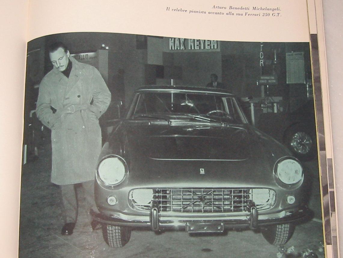 A g. le pianiste Arturo-Benedetti Michelangeli devant sa 250 GT PininFarina.