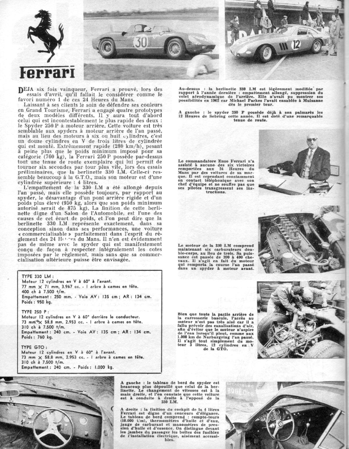 Le Mans 1963 (à g.et au centre) et 1964: Ferrari s'apprête à une septième et huitième victoires avec ses V12.