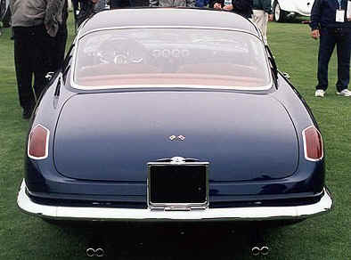 On note sur ce dessin très original le léger "pincement" de carrosserie, qui relie les ailes arrières, dans un style caractéristique de PininFarina à cette époque et que l'on retrouve sous une forme plus moderne sur la 250 GT coupé 2-places de production, et qui était déjà présent sur certaines "Tour de France" et sur les Spider California.
