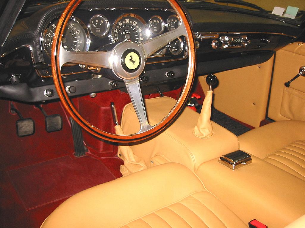 Sellerie confortable et neuve, tableau de bord immaculé et volant en bois et aluminium poli, fonctionnement sans défaut de toutes les commandes et de tous les accessoires, le voyage en 250 GT est un plaisir sans mélange et sans arrière-pensée.