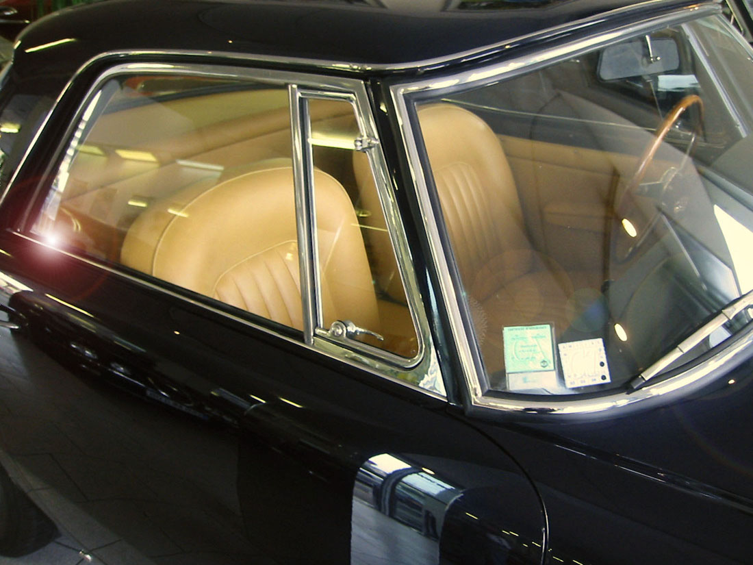 Finie en bleu nuit (blu scuro) et sellerie cuir naturel, son éclat est somptueux d'abord par le contraste entre la peinture polie - conforme au procédé d'époque, ce qui est important pour la valeur de l'objet - et ses chromes en état absolument neuf.