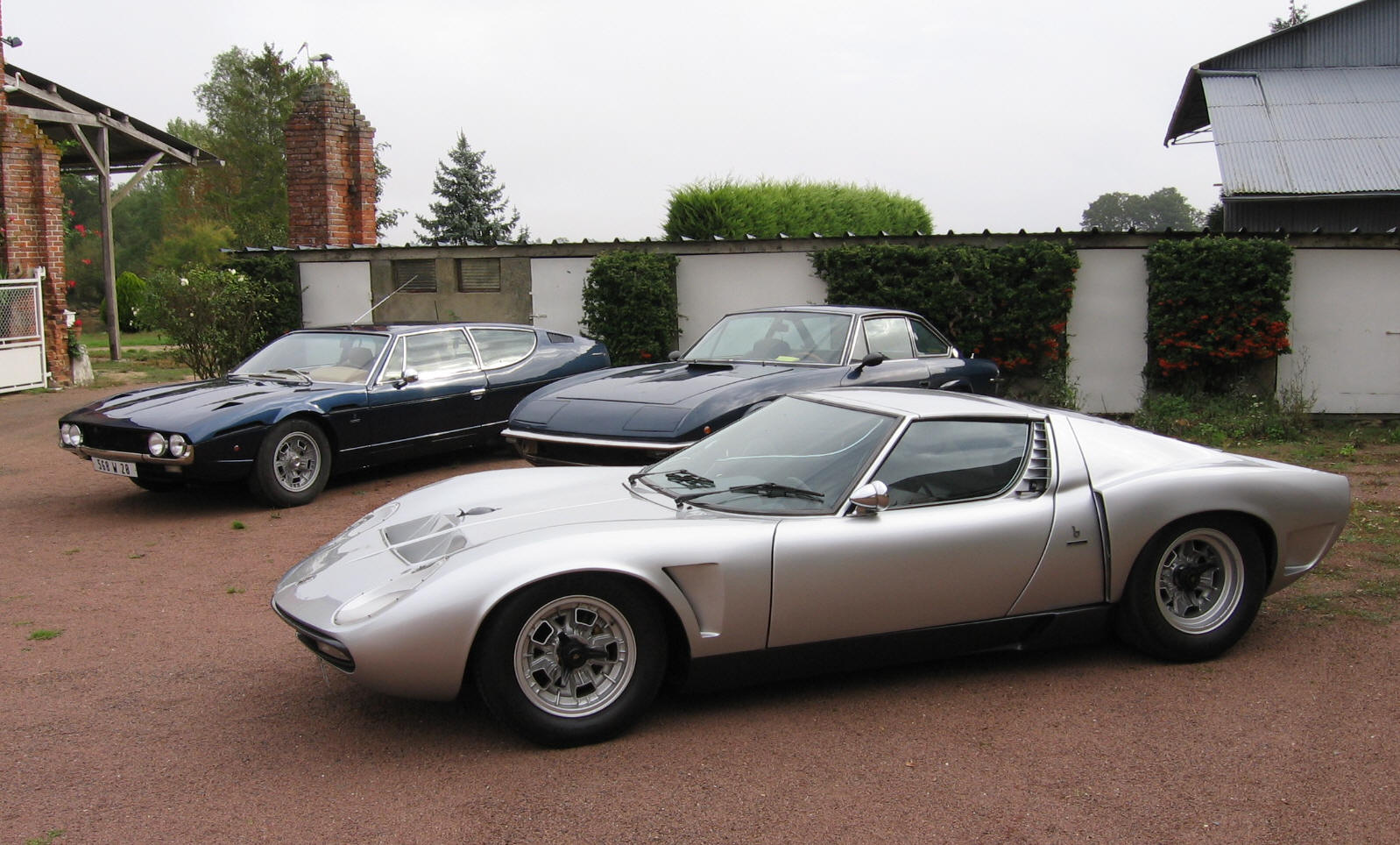Lamborghini 350 GT (Autodrome Collection), Miura S (Autodrome Collection) and Countach LP400 restored by Autodrome & Carrosserie Lecoq.