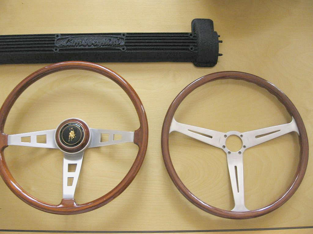 Parts used in the restoration process are either brand new or authentic period parts restored to a perfect condition and aspect. (left, Islero & 400GT steering wheels, Cam cover),