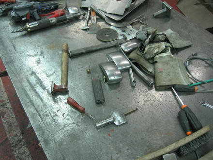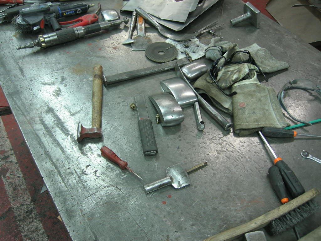Maillets, gants de travail, formes en métal, il faut peu d'outils mais une immense compétence pour restaurer une oeuvre techniquement parfaite.