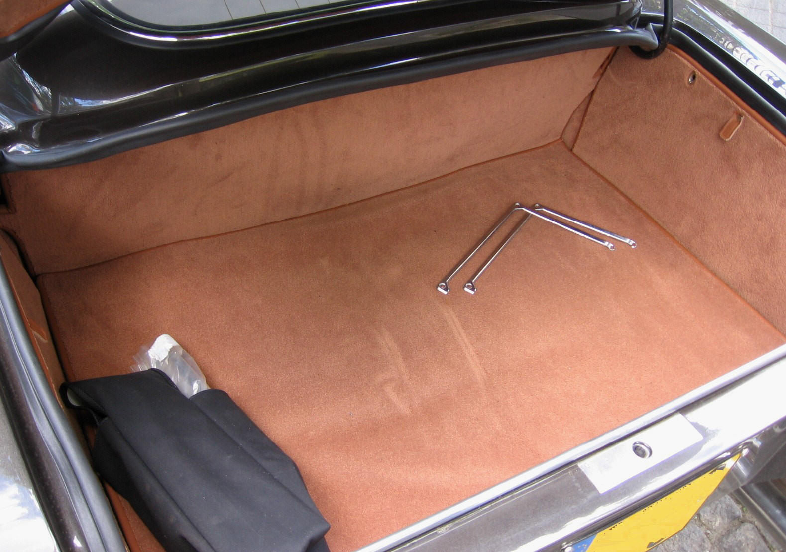 Les travaux de carrosserie, peinture et sellerie ont été confiés à notre partenaire la Carrosserie Lecoq, la meilleure maison en France pour la restauration d'automobiles. La carrosserie est finie dans une sublime gris foncé métallisé, profond et lumineux à la fois - voir les premières photos ci-dessous. La sellerie a été refaite à neuf dans le meilleur cuir, en coloris "tan" (naturel). Les moquettes sont neuves, y compris bien sûr dans le coffre, ainsi que les garnitures intérieures isolantes dans la baie moteur.