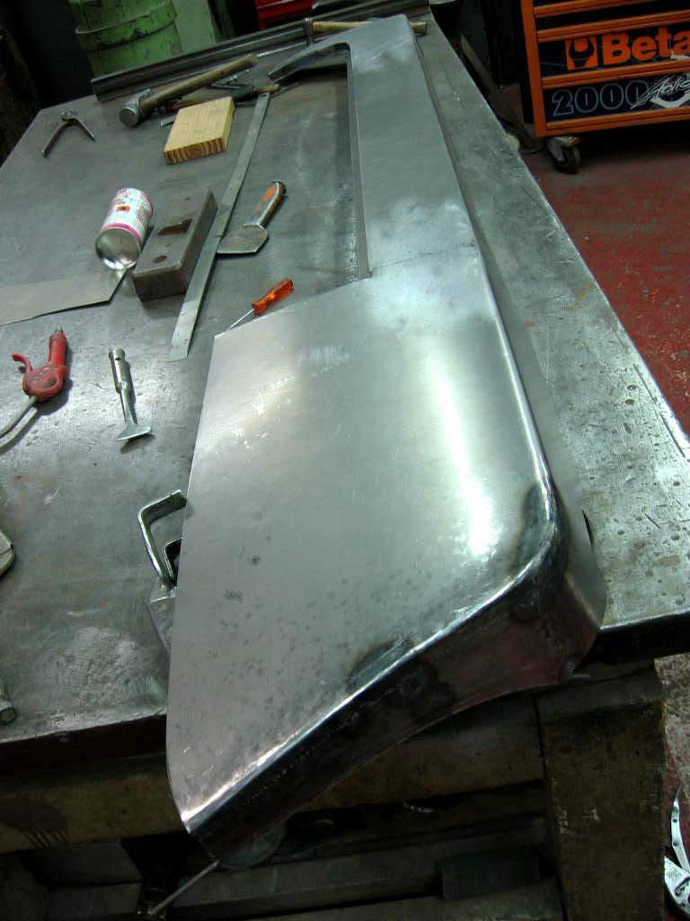 Le travail des maîtres-carrossiers Lecoq avance, minutieusement effectué depuis le métal nu, reconstruit à l'identique à chaque fois que nécessaire.