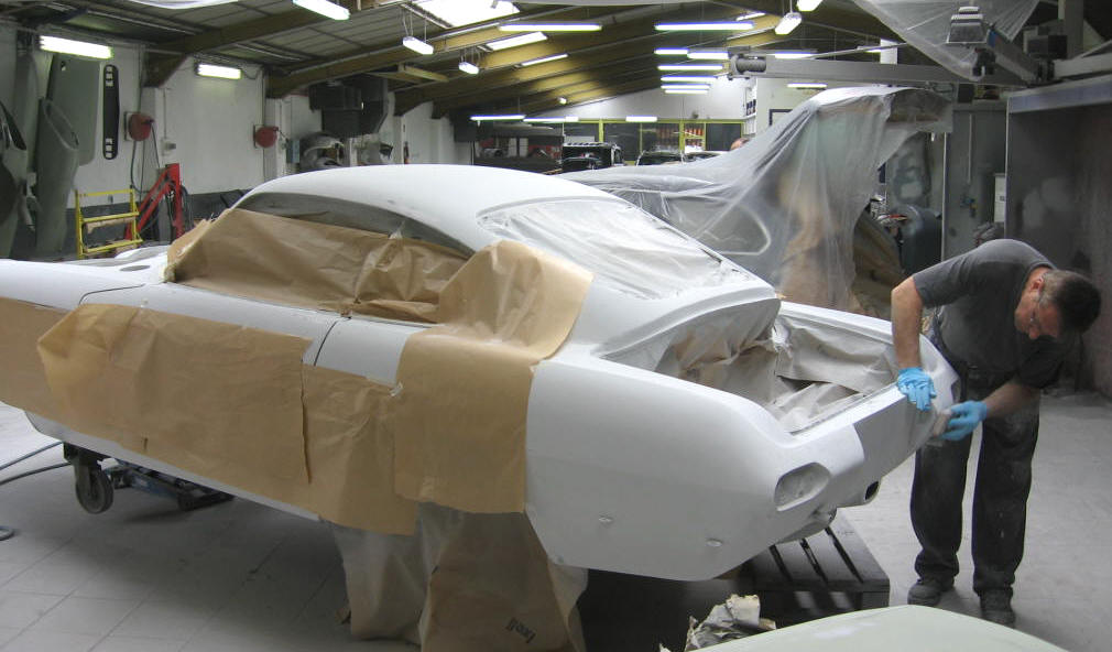 Durant la restauration par les meilleurs spécialistes au monde (ici la Carrosserie Lecoq), nous supervisons chaque phase du travail.