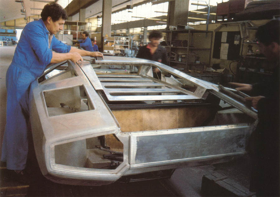 Photo prise à l'usine Lamborghini en 1979 ou 80 : aucun robot à l'horizon, aucune étude marketing, juste la recherche de la perfection.