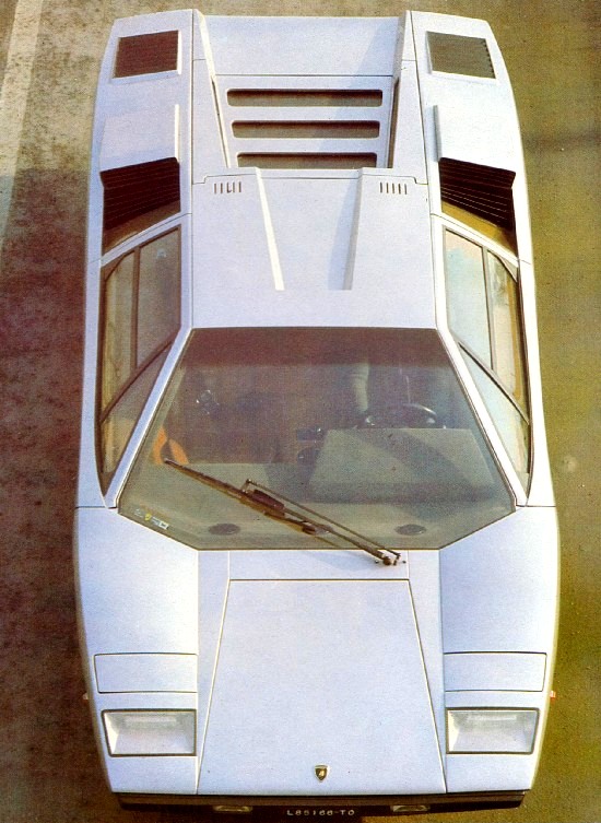 Volumes et graphismes littéralement jamais imaginés avant elle, audace technique du moteur central à boîte de vitesse inversée pénétrant dans l'habitacle et portes mythologiques en ailes de scarabée ... L'inspiration de Paolo Stanzani, Marcello Gandini, Gianpaolo Dallara établit à tout jamais un absolu de l'automobile sportive.