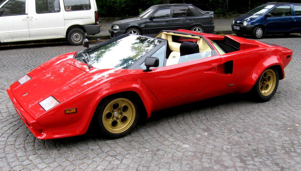 L'une des très rares photos d'époque de la Countach LP400 Spider. Notez les vitres "roadster" allégées de leur partie supérieure.