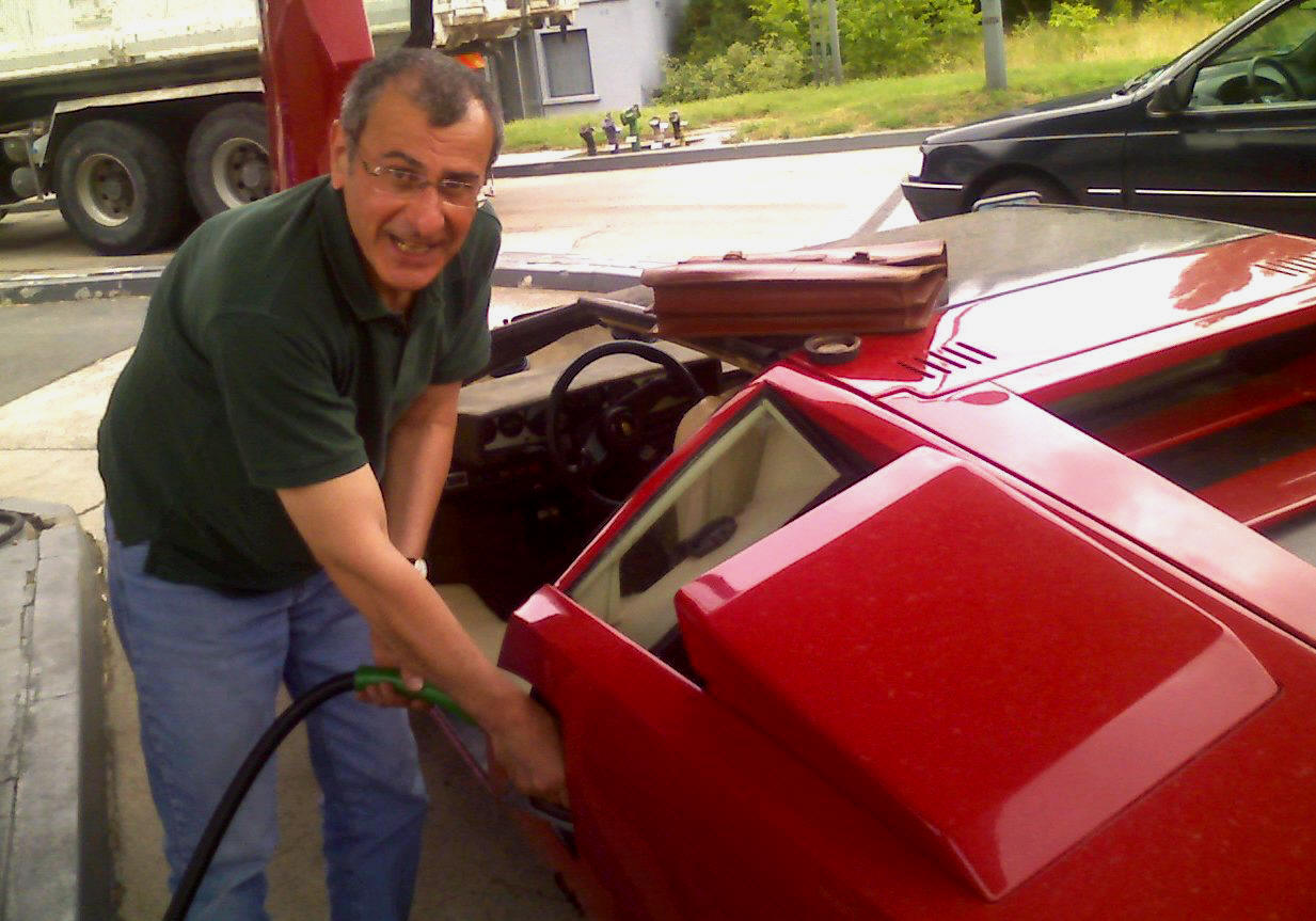 Neldo Levy (Autodrome) is visibly delighted to fill the tank of the LP400 Spider, found after long years of research.