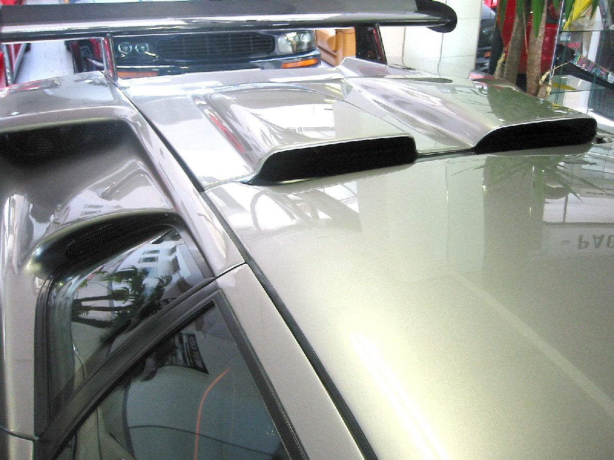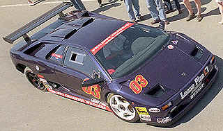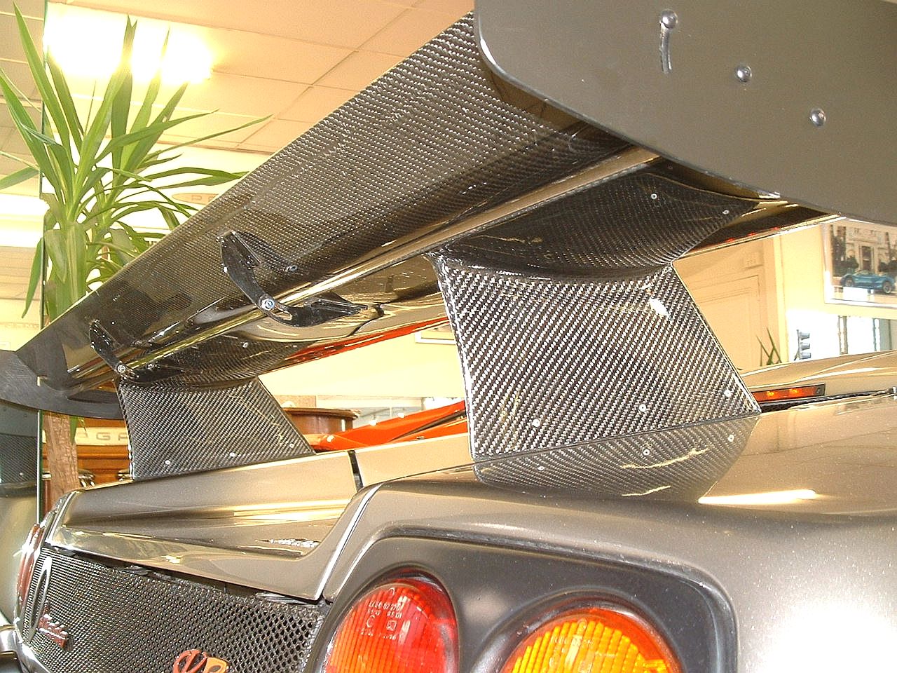 Notez l'aérodynamique spécifique : spoiler avant, aileron réglable utilisé en compétition, véritable extracteur créant un effet de sol considérable à l'arrière.