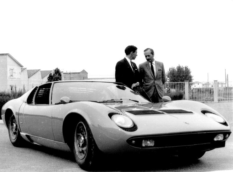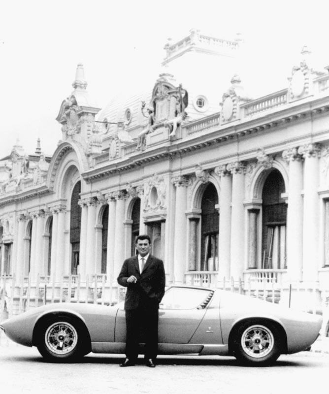 Ferruccio Lamborghini devant ce qui restera le chef-d'oeuvre de sa vie