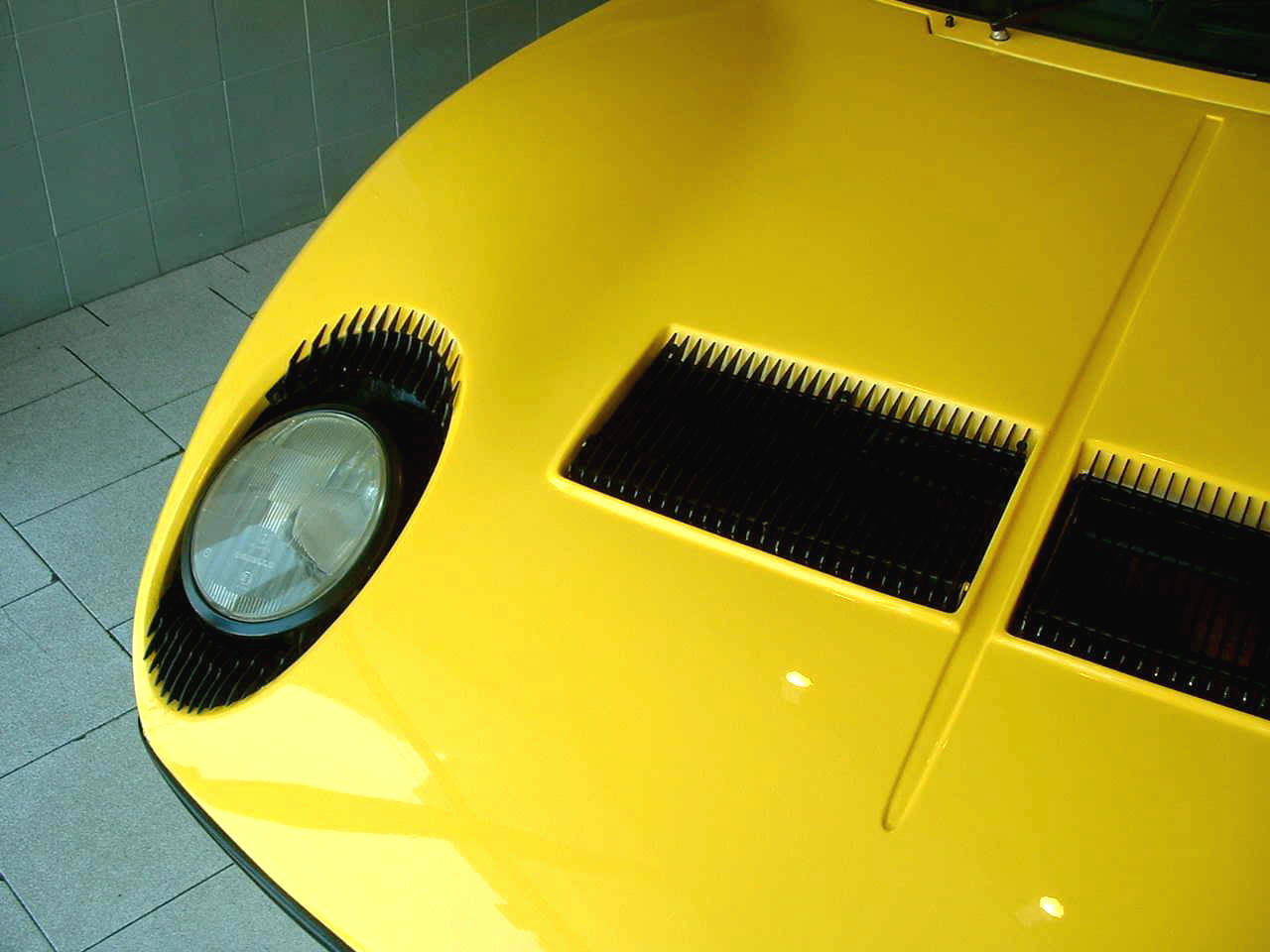 Sur cette voiture, il n'y a pas d'air conditionné, ni de vitres électriques, et même les manivelles de lève-vitre sont encore celles en aluminium ajouré, l'allègement maximal de l'auto étant évidemment l'une des armes de Lamborghini dans sa lutte acharnée pour la supériorité absolue dans le Gran Turismo...