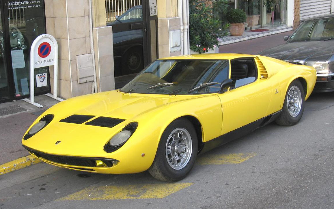 L'allure désuète des autres autos en 1965 souligne le choc que représenta l'irruption de la Miura.