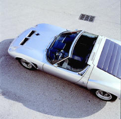 Rappelons que Bertone avait exposé en 68 sur son propre stand au Salon de Bruxelles une étude de style baptisée Miura Roadster (#3498). Elle n'avait ni toit amovible ni capote, et le moteur était à l'air libre, dépourvu de jalousies protectrices: une "voiture de rêve" disait-on à l'époque - et sans intention de production, comme l'indique le communiqué de presse Bertone.