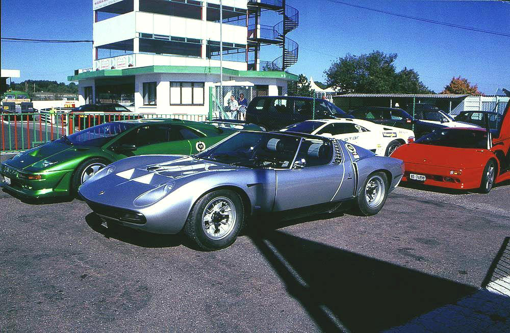1985-90 : Durant les années 80, la Miura SVJ Spider fut admirée dans divers rassemblements de Lamborghini et d'automobiles classiques (photo ci-dessous prise en Suisse à la fin des années 80).