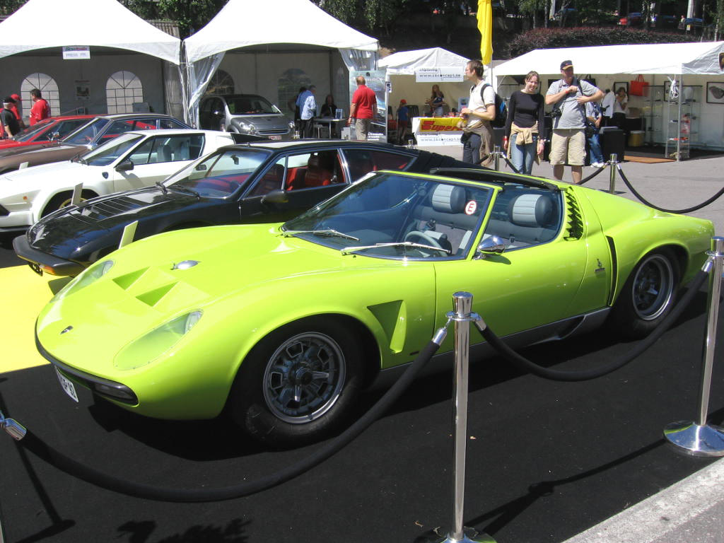 L'usine Lamborghini exposait la "Miura Concept" (2005) ; juste derrière, la réplique de la Jota, la SVJ ex-Chah d'Iran finie en bordeaux, au centre la SVJ Spider, prototype unique, et deux superbes Miura S - la vert pomme fut celle du mannequin vedette Twiggy - , et la SV noire de S. Kidston, un des meilleurs experts mondiaux en matière de Lamborghini. Une telle présentation n'avait jamais eu lieu - et ne se produira sans doute plus. La SVJ Spider est encore plus recherchée en tant que pièce unique, que les autres SVJ, dont cinq furent construites par l'usine.