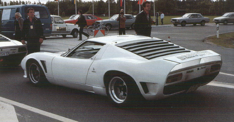 The Miura #4808 rebuilt as an SVJ-style Spider, pictured in late 1980 besides a Miura S