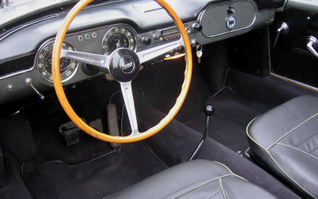This Flaminia Convertible is finished in Silver with black leather upholstery, a magnificent combination which enhances the elegance of the bordywork shapes.