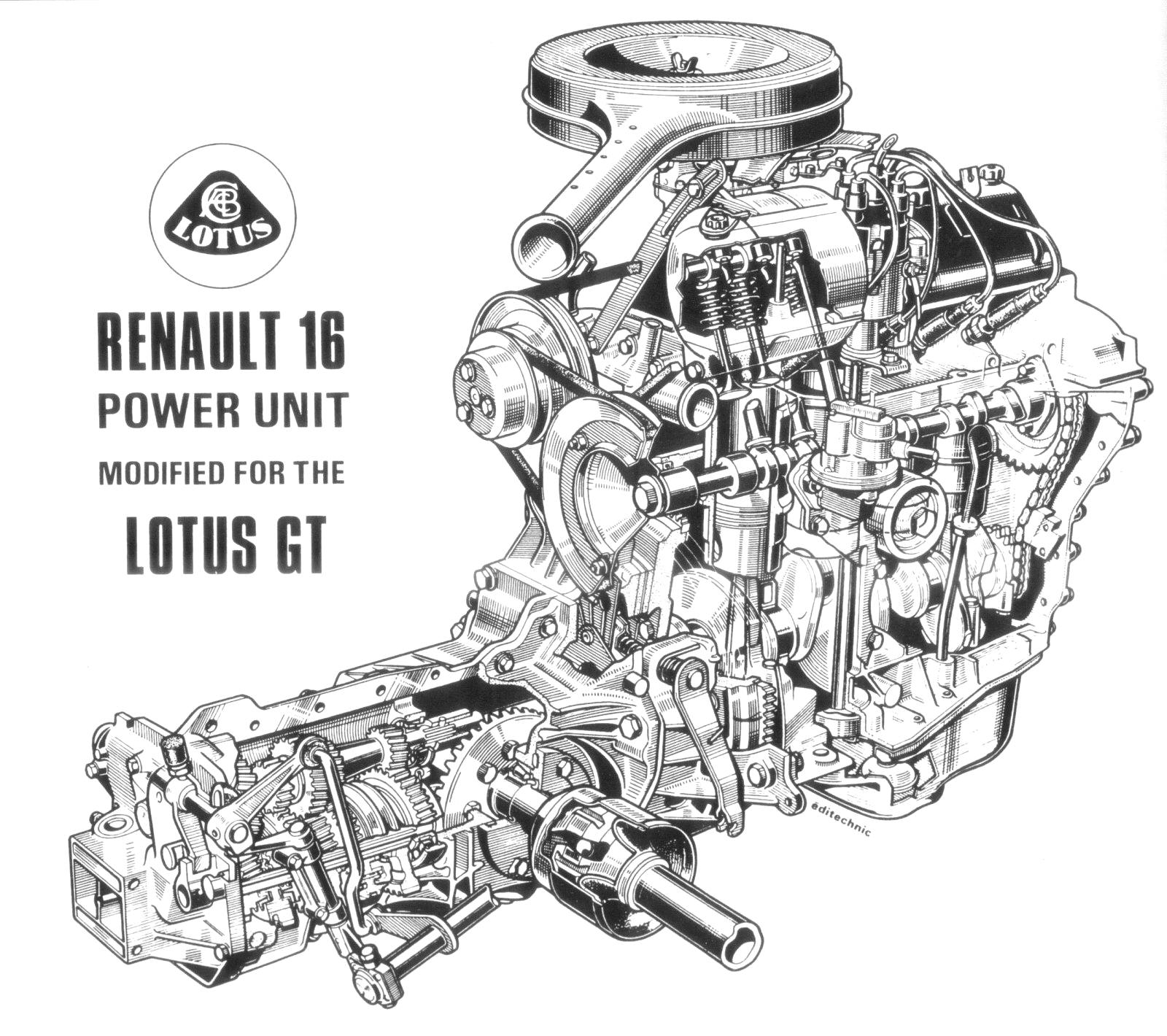 Moteur Renault 16 "modifié pour la LOTUS GT".