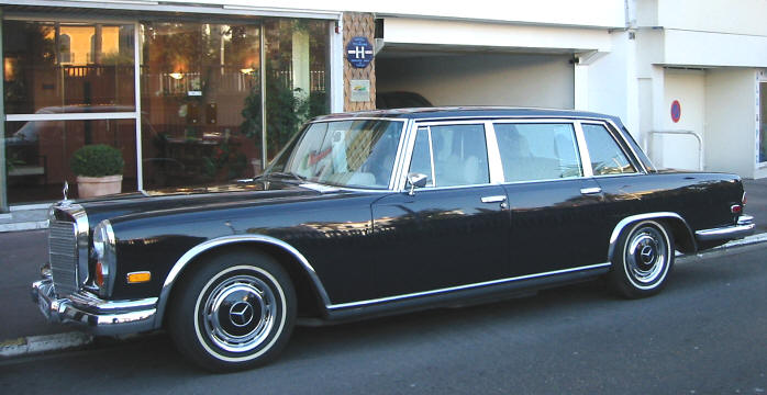 Cette voiture est une légende dans l'histoire déjà riche de Mercedes-Benz : choisie comme véhicule personnel ou de parade par de très nombreux chefs d'état et personnalités (John Lennon, la Reine Elizabeth II, le prince Rainier, Maria Callas, le Shah d'Iran, Herbert Von Karajan, Mao-Dzé-Dong) elle a représenté, durant toute la durée de sa production, le sommet du confort et du prestige en matière de limousine. Construite uniquement sur commande en 2677 exemplaires au total, dont 59 Landaulets (tiers arrière de la cabine découvrable) et 428 Pullman à six portes, elle n'a connu aucun équivalent depuis.