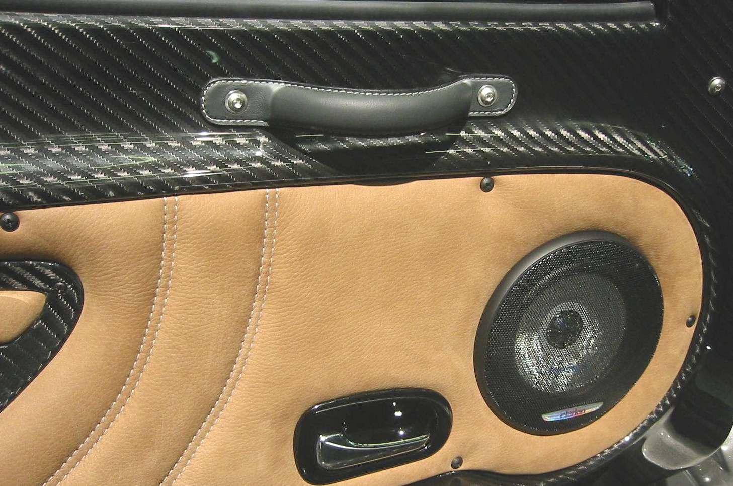Détail de la contre-porte ; fibre de carbone et daim : un fini superbe, ultra-léger, fonctionnel.