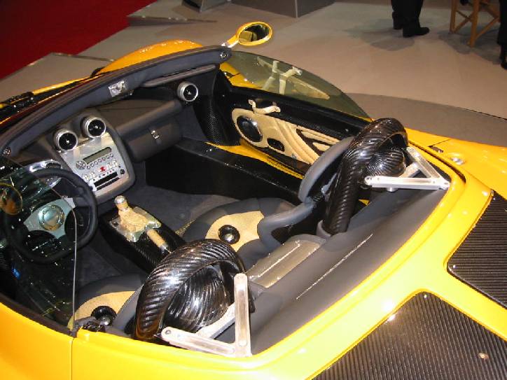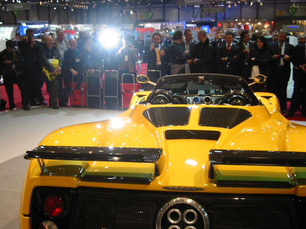 Horacio Pagani et son équipe ont encore une fois signé une véritable sculpture mécanique, incontestablement la vedette du Salon de Genève 2003. Le Roadster focalise tous les regards et toutes les convoitises.