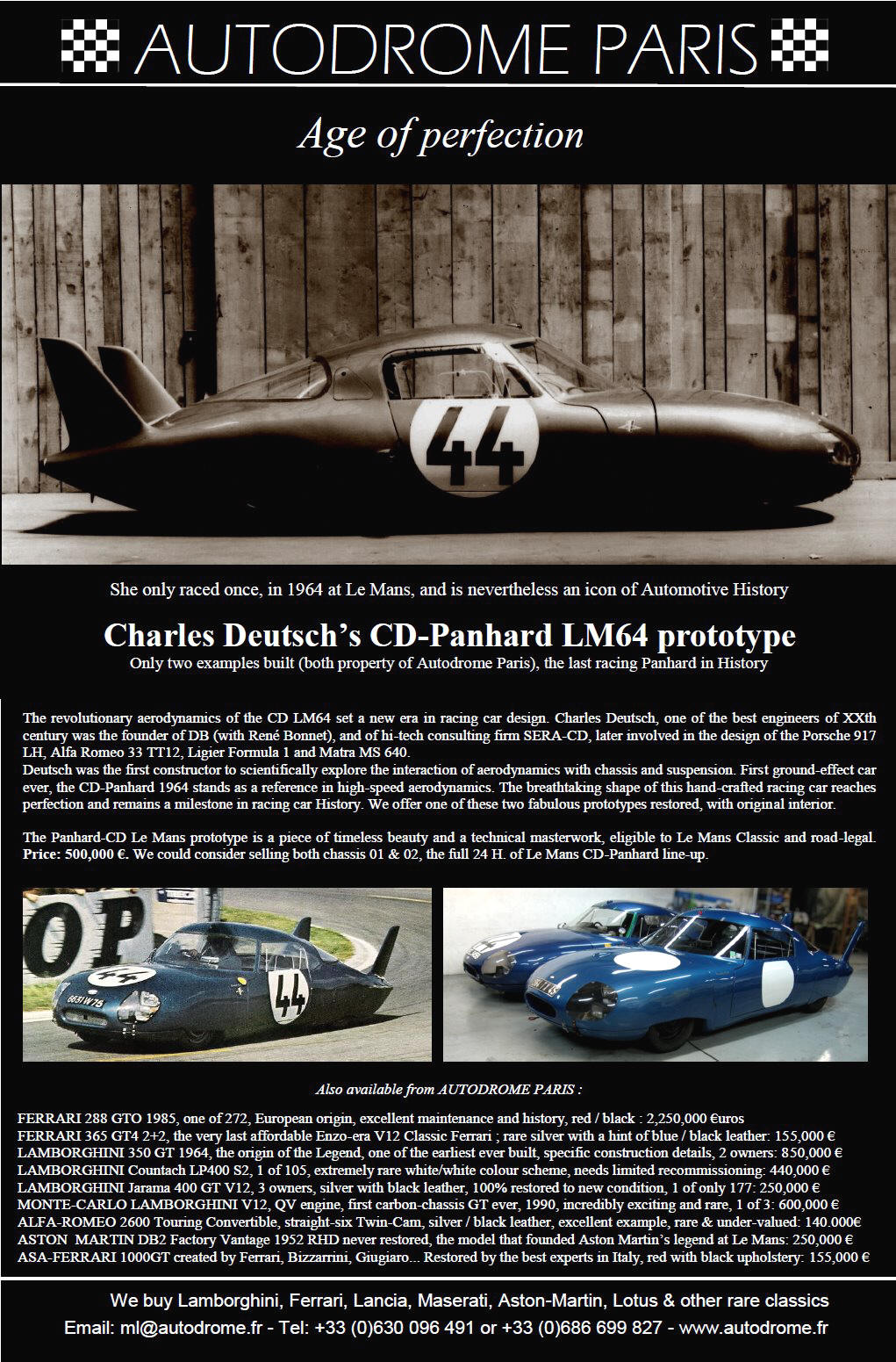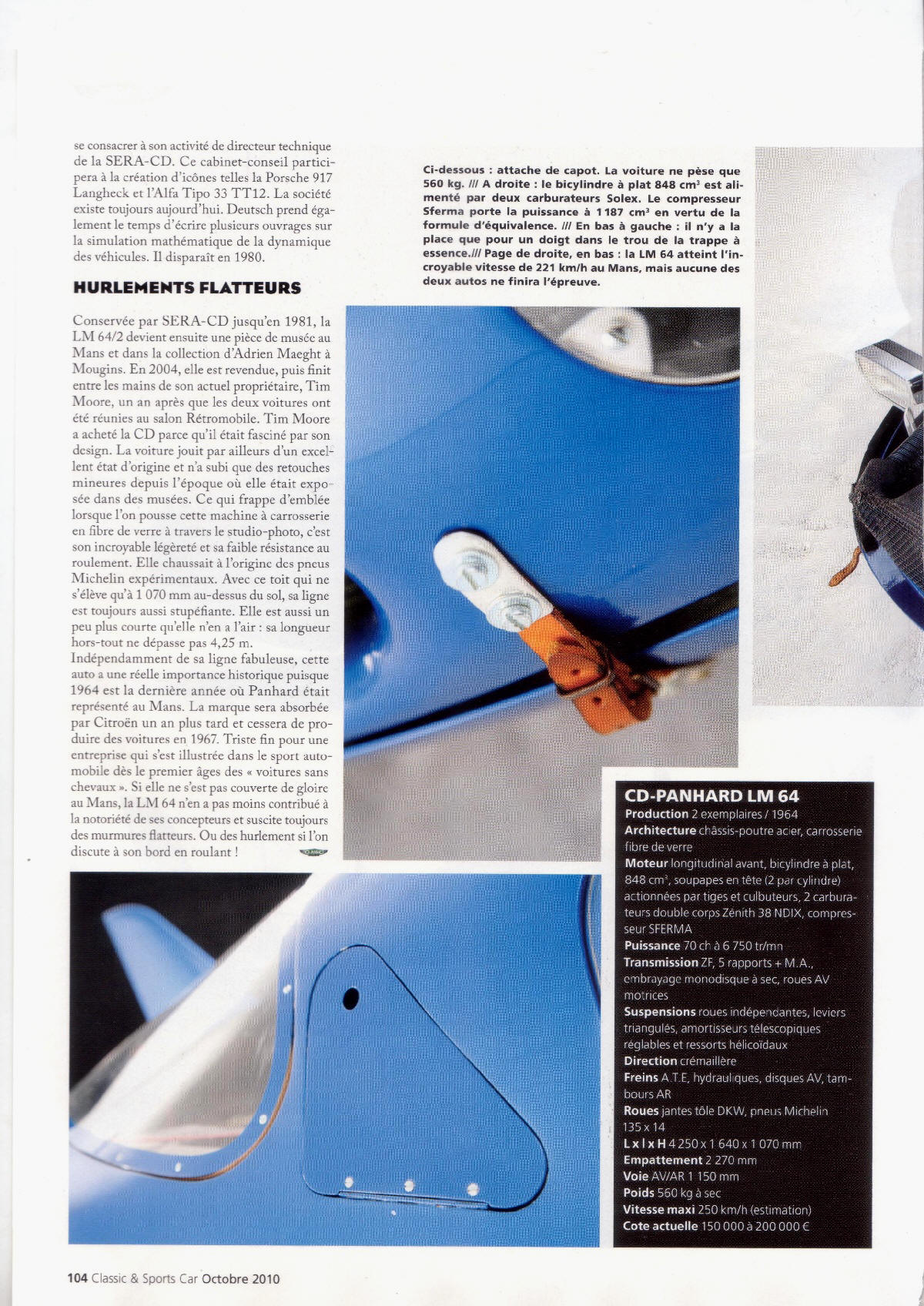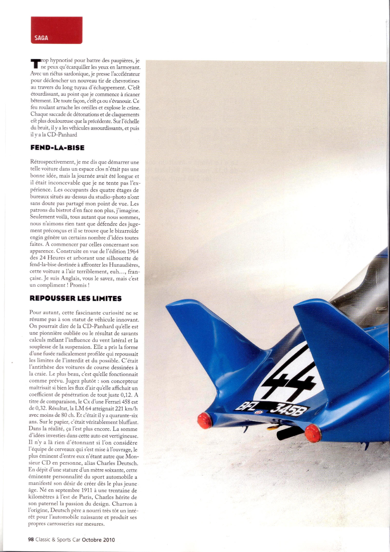 Le dossier d'une dizaine de pages consacré par Classic & Sports Car rappelle ce qu'est le mythe de "la CD Panhard" : l'apogée des recherches aérodynamiques de Charles Deutsch, Robert Choulet et Lucien Romani.