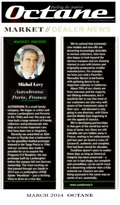 Rétroviseur, une revue des plus respectées en matière d'Automobile de collection, fait dans son numéro d'Avril 2007 l'éloge du garage Autodrome. Connu depuis de longues années, Autodrome a toujours représenté la compétence et l'exigence de servir les clients au mieux de leurs intérêts, et cette réputation s'est fondée d'abord sur les Lamborghini classiques, un lignée de chefs d'œuvres mécaniques aujourd'hui recherchés avidement par les passionnés et les collectionneurs avertis.
