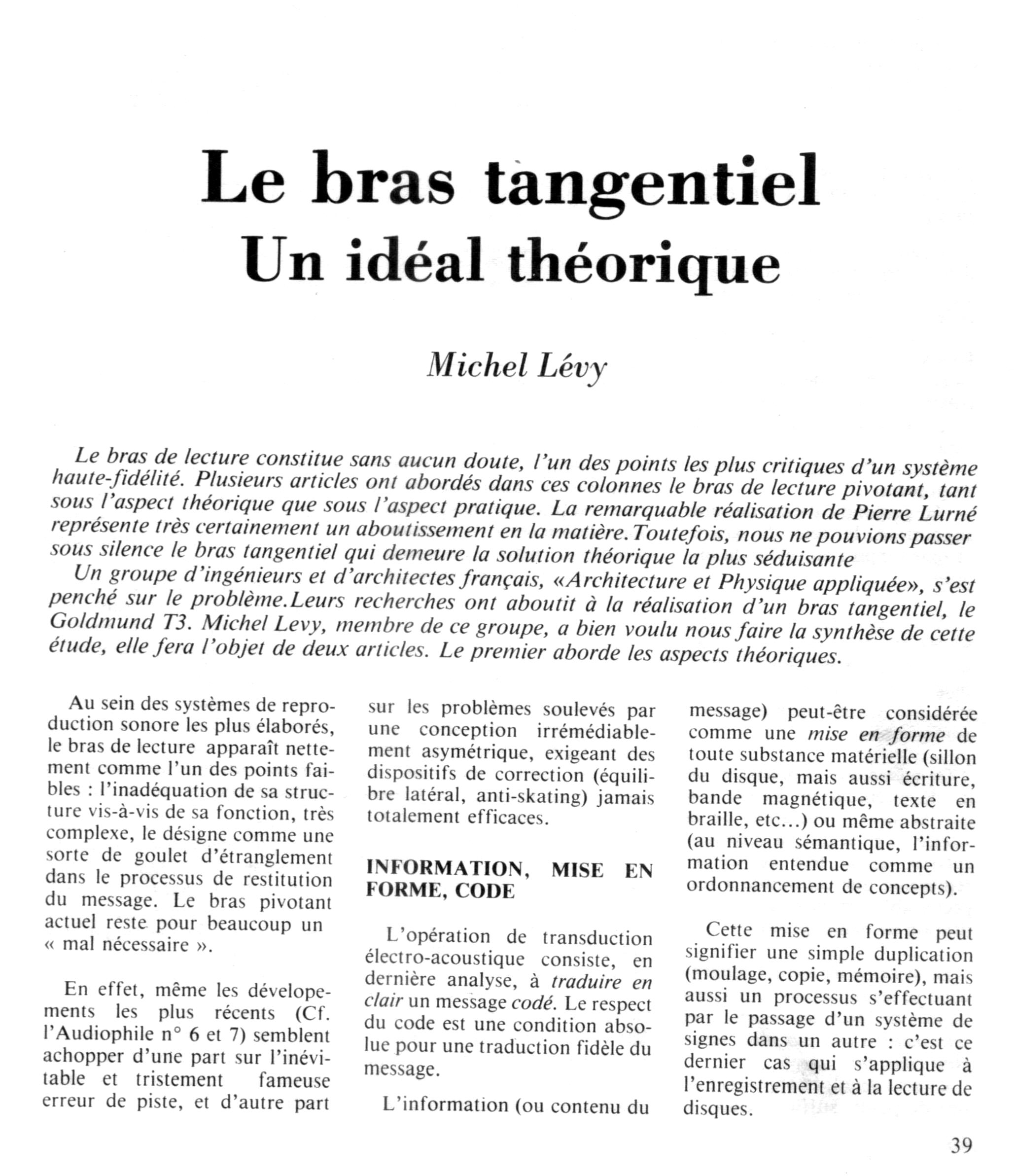 La revue théorique d'acoustique et de haute-fidélité française "L'AUDIOPHILE" a publié des articles de Michel Levy.