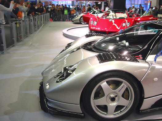 Le Stand Autodrome au Mondial de Paris : 3 Zonda dont la version piste "Monza" (au premier plan).